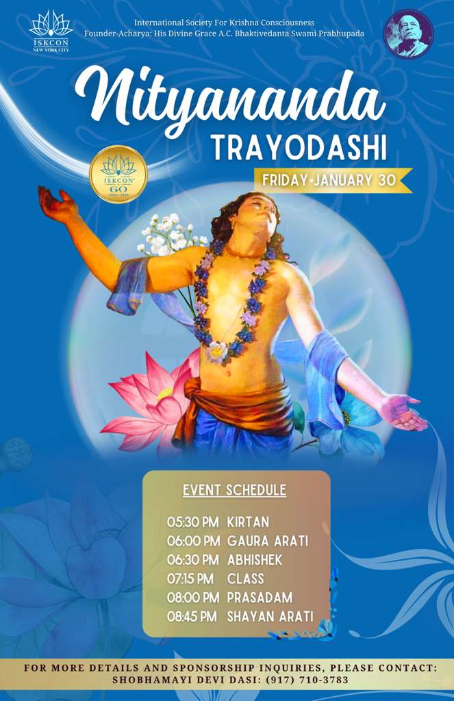 On Friday, January 30th we will be celebrating the most auspicious Nityananda Trayodasi (appearance of Lord Nityananda).