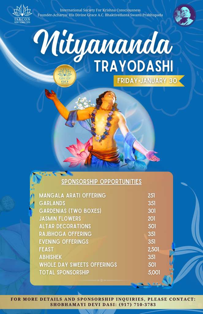 Schedule for Nityananda Trayodashi